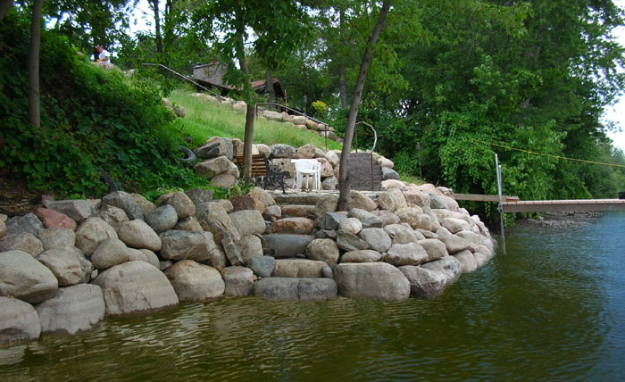 If you own waterfront real esate on a lake or river in Minnesota, you have made a significant investment that needs to be protected; consider Rip Rap. shoreline erosion is a major concern and a significant risk to your invenstment. We use several different methods to address shoreline erosion in Minnesota, and we are able to resolve virtually any shorelinie erosion situation. Once of the most common and most cost effective shoreline erosion control techniques is to install riprap. Properly installed rip rap can enhance the valeu of your property and protect if for generations to come.