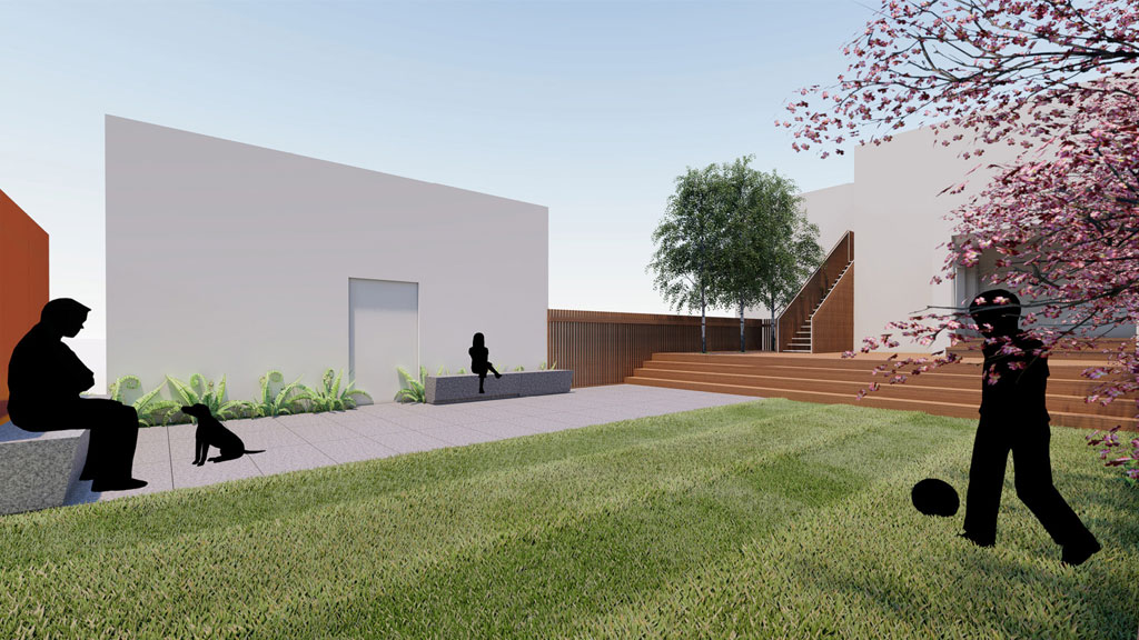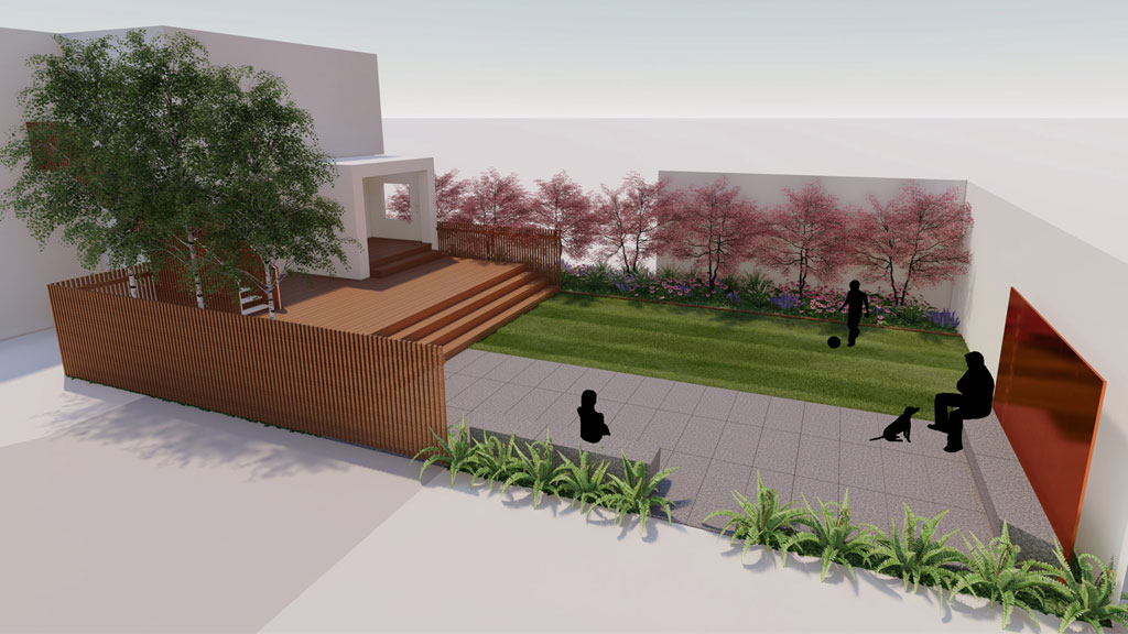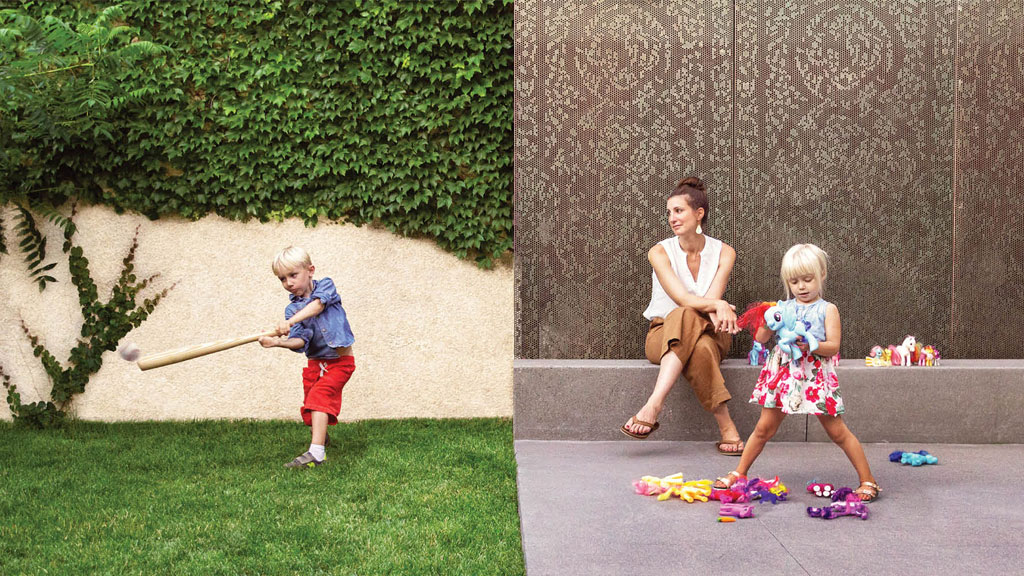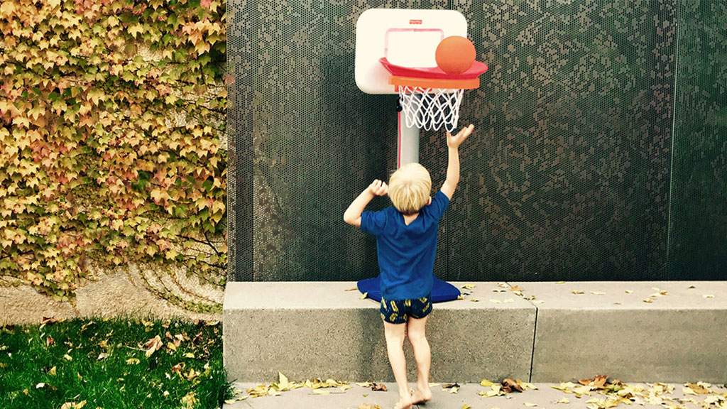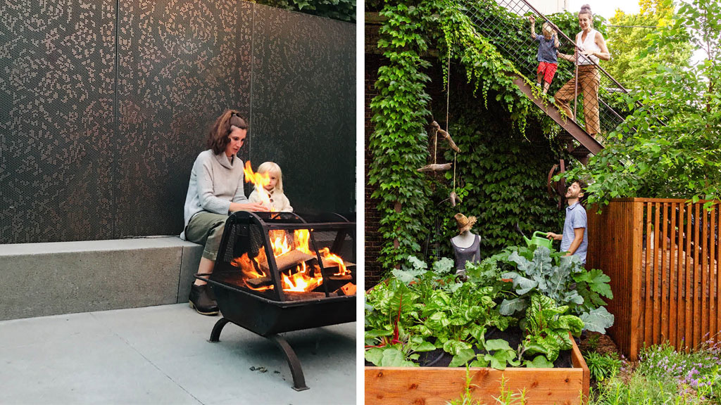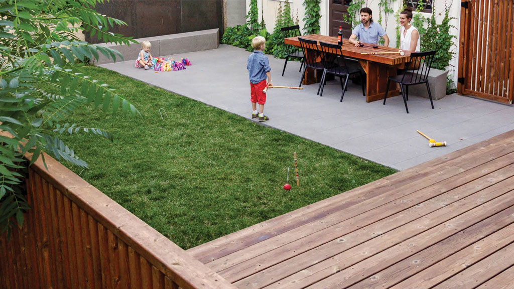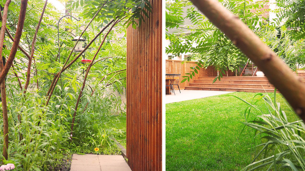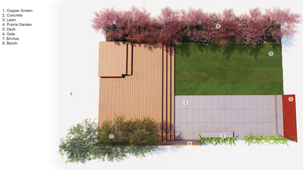 Simplicity and functionality are the central components of this impactful residential renovation in Minneapolis’ Lowry Hill neighborhood. Five rectangles: wood, concrete, copper, turf, and meadow are balanced within the small urban backyard; artfully arranged and scaled to the family’s uses. The Minneapolis landscape design subtly provides privacy and programmatic clarity by maximizing opportunities for play and entertainment. The flexible space easily morphs from badminton course to fireside get-together. The perforated copper screens were reclaimed from Minneapolis’ Westminster Church and are complemented with custom precast concrete benches; the materiality and formal organization provide a modern touch to this classic family home. The resulting space is contemporary, tranquil, and provides the kids a stellar backboard for jump-shots!